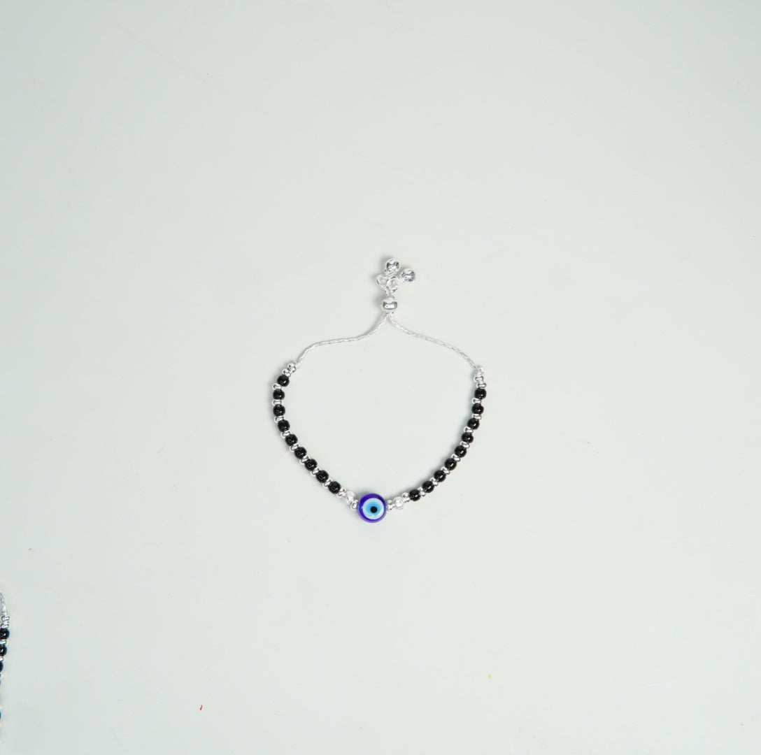 Baby Silver Evil Eye Black Bead Nazariya Anklet
